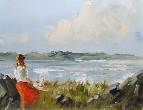 Thelma Mansfield has always loved the sea shore from her early days on the beach with a net and bucket, trying to catch things and discovering all kinds of sea shells. She has had a long and happy relationship with Conamara bogs, regularly walking there with hawks and dogs. Her studio in Spiddal overlooks the little harbour and she revels in painting it in its various moods, especially in the storm. Thelma enjoys watching the comings and goings of the hookers and gleoiteogs.This exhibition, her first, reflects these loves.