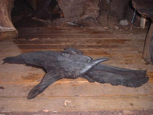 The bog-pine is a piece of what I call "Atlantic bog-wood"... driftwood released from the bog by a winter's Atlantic storm waves & thrown up some time later on nearby beaches. It is always difficult to carve, impregnated as it is with sea salts and sand... blunts the chisels quickly, & being particularly disobedient, it is always a challenge to finish.