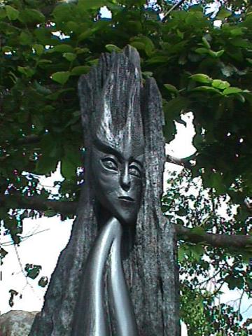Ragged, rugged but still smiling. I see this as a self portrait of sorts. "This guy needs a therapist" - immediate reaction of Enda Coffey (Galway wood-turner) on first seeing this sculpture. Some sculptures refuse to be photographed in their entirety. This is one of them. The expression changes as you move around the sculpture.