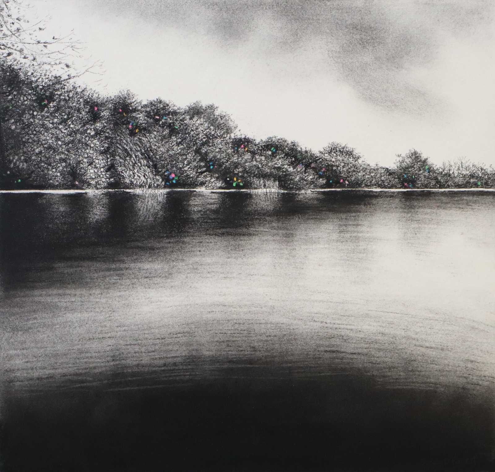 Media: Charcoal, Indian ink and pastel on paper mounted on wood, 12x12in |